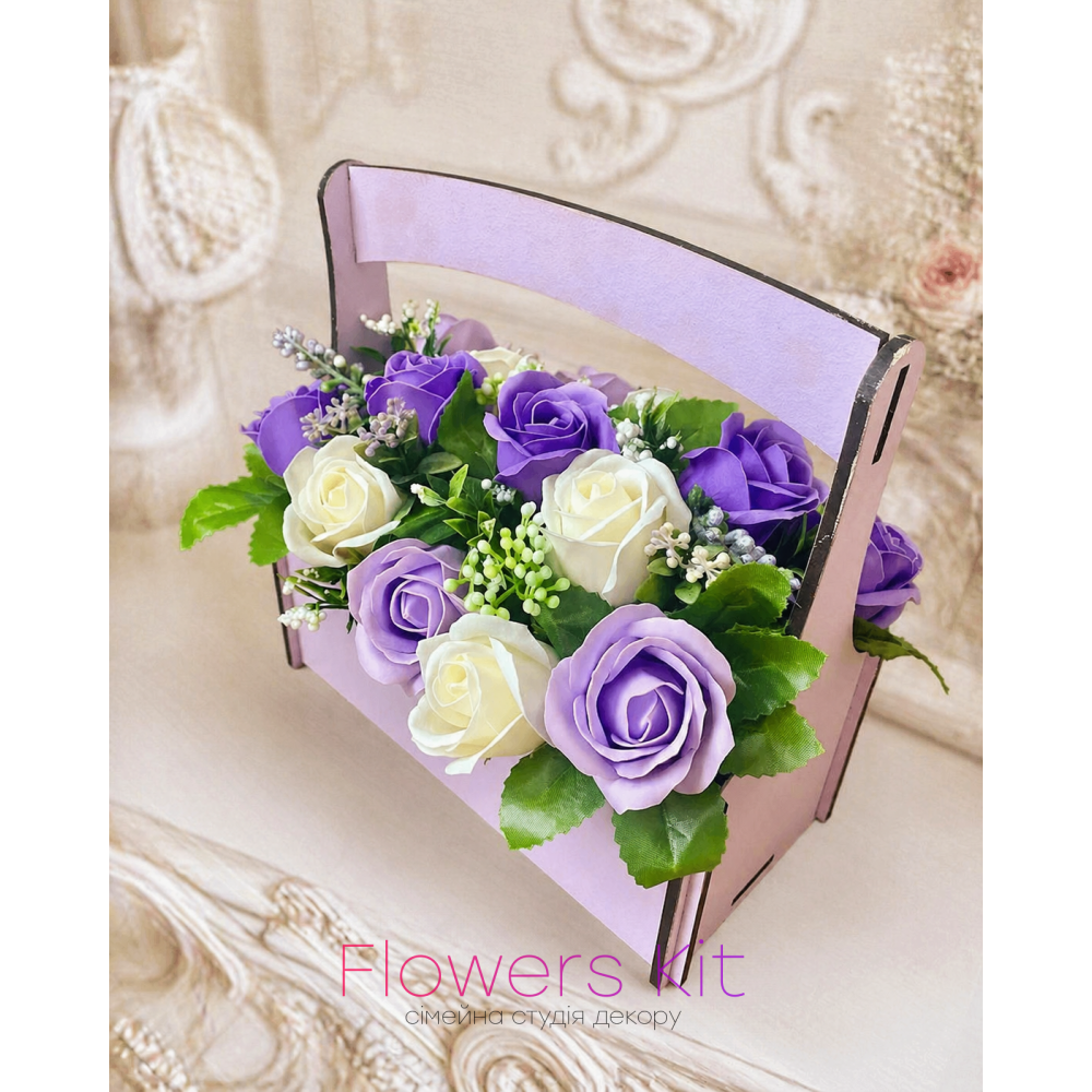 Цей букет — поєднання ніжності, стилю та витонченого смаку. Композиція оформлена у декоративному кошику з акуратною ручкою, що додає їй особливого шарму та робить ідеальним варіантом для подарунка. Лавандові та кремові троянди створюють м’яку, гармонійну палітру, яка виглядає стримано розкішно та дуже елегантно.
